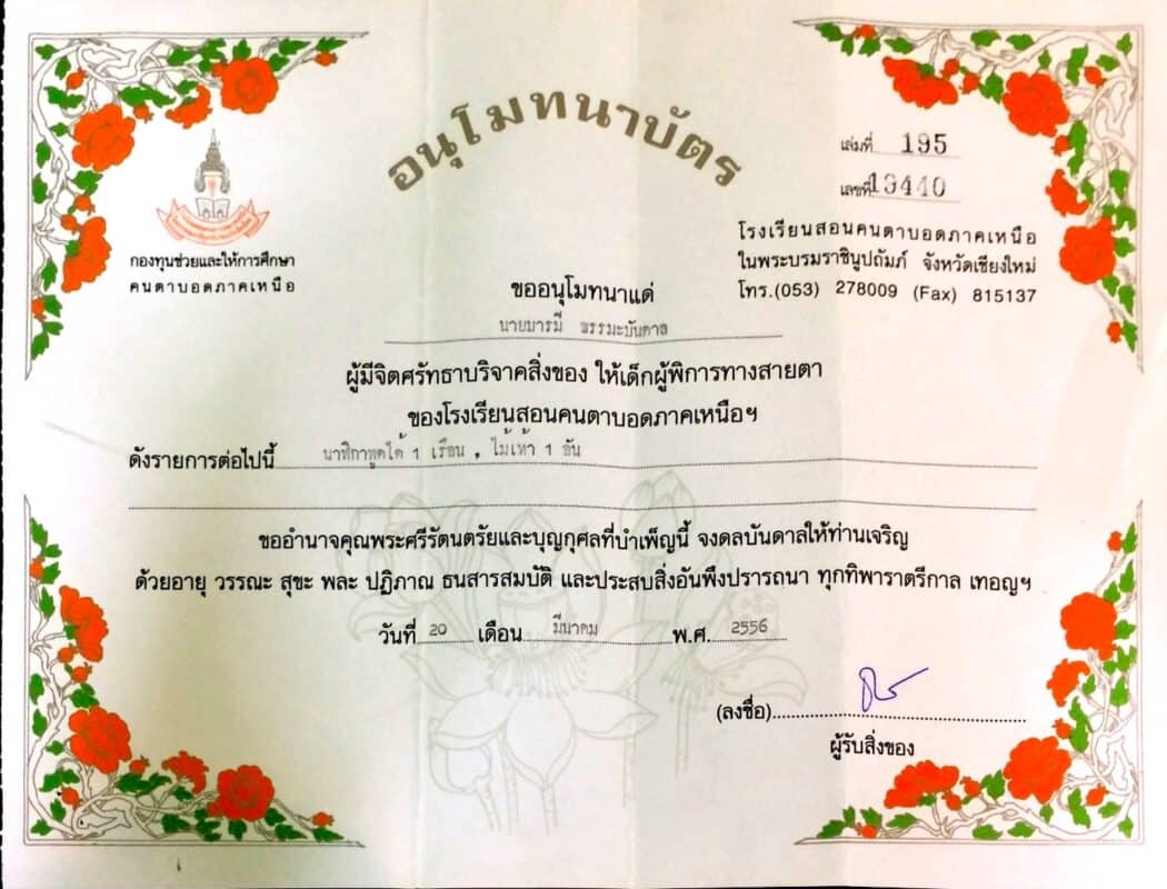 รายได้ส่วนหนึ่งจากการทำงาน มอบให้กองทุนบอดช่วยบอด บอดร่วมบุญ