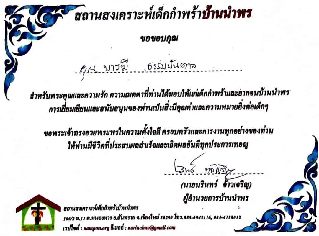 ร่วมบริจาคสิ่งของ เช่น นม กระดาษทิชชู ฯลฯ ให้กับมูลนิธิเด็กอ่อน